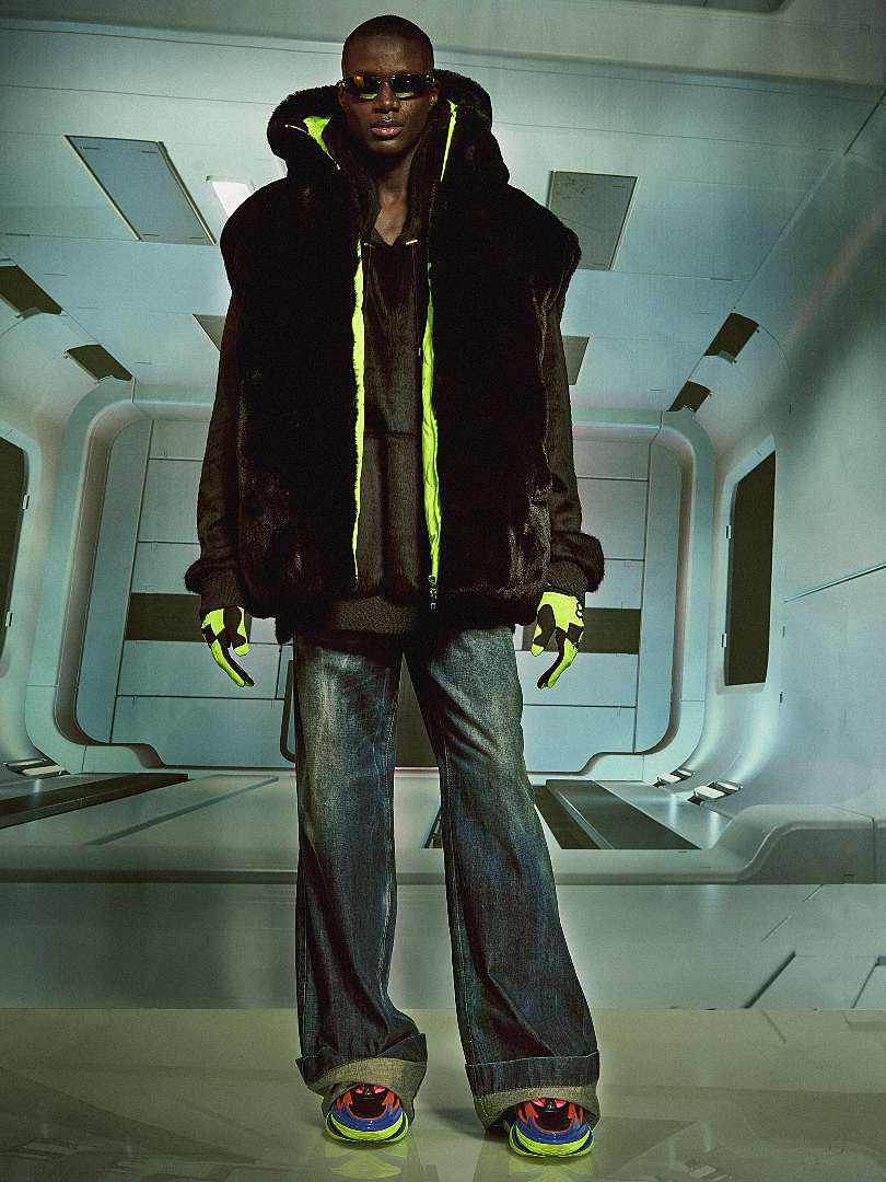 Inspired by the heritage of the Parisian fashion house, but always looking to the future, the Balmain style codes feature in various forms. The famous golden buttons adorn both the single and double-breasted pieces. The shoulders showcase bold design and recall the brand’s military inspirations. The monogram print also adorns both the denim jackets and the nylon bomber jackets, as well as the wool coats.